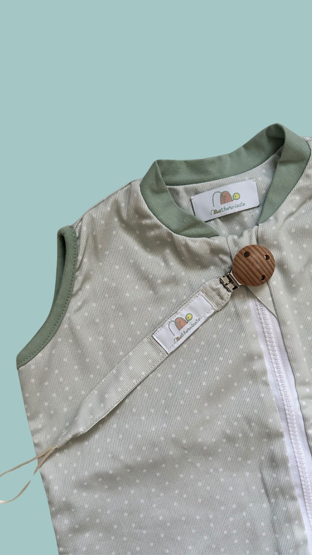 Saco de dormir cerrado, sin mangas y cremallera con doble apertura, sin tóxicos.