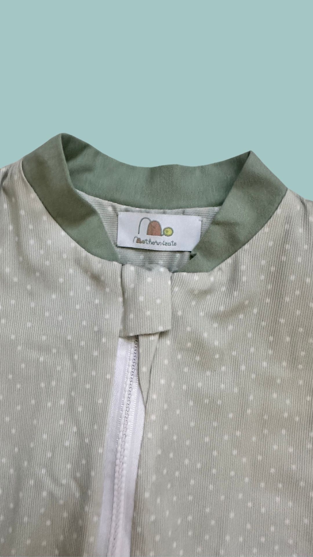 Estampado con topitos, en tono blanco, sobre fondo verde mint.