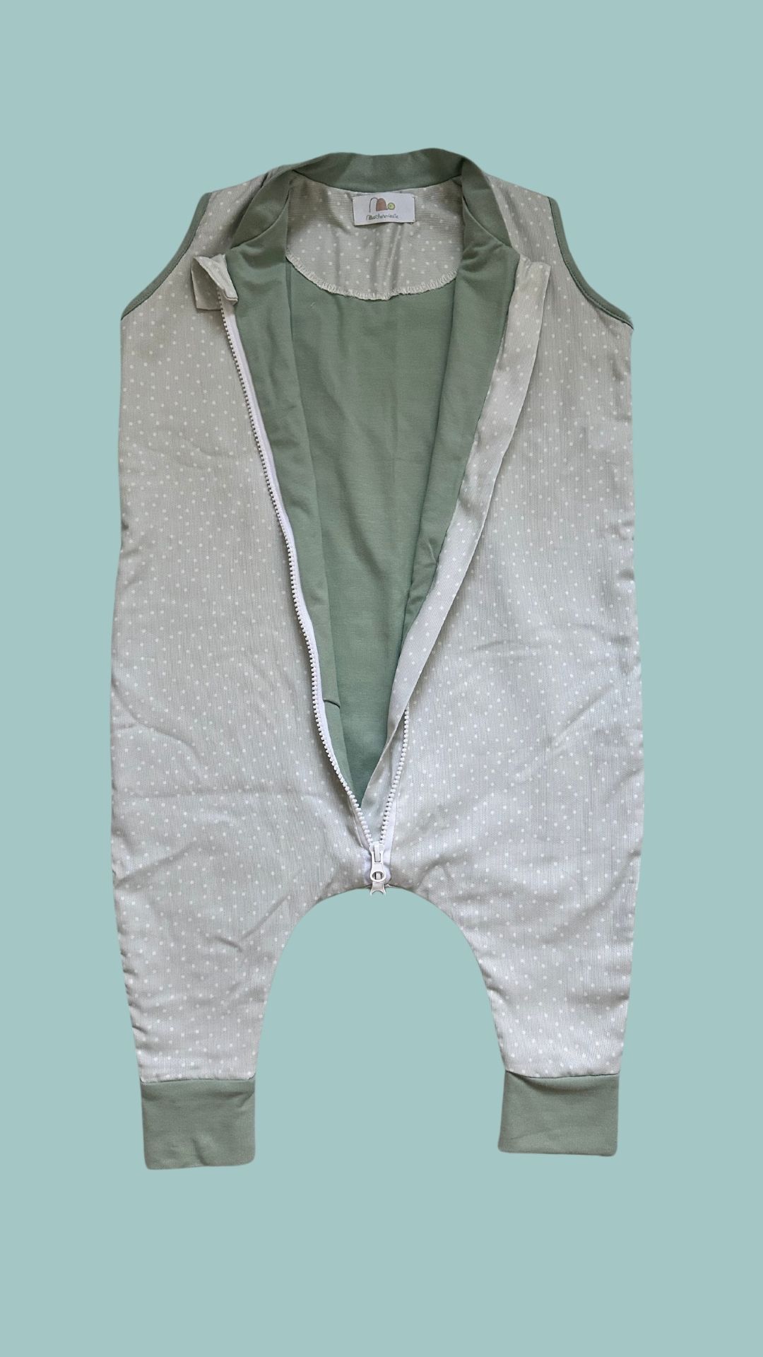 Saco de dormir con pies, sin mangas y cremallera con doble apertura, sin tóxicos.